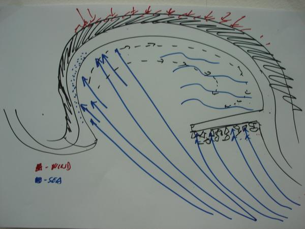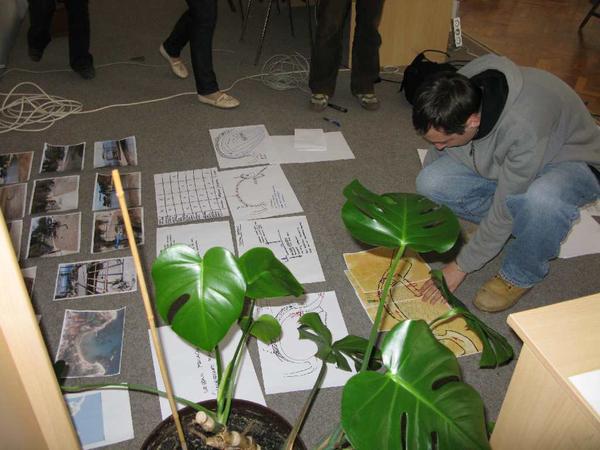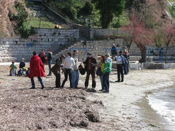 We start to gather information. We interviewed lots of people, and we found out lots of interesting and useful information's. We also collected all kinds of objects from the beach, so that we can use them later as a reminder of the place. Then we had a relaxed coffee in a bar overlooking the place and we started a very loud discussion...